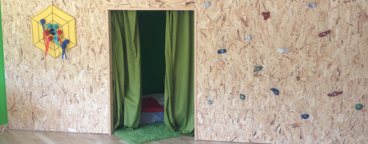 Innen dient die Snoezelenecke als Entspannungsraum, aussen kann sie als Klettermedium genutzt werden