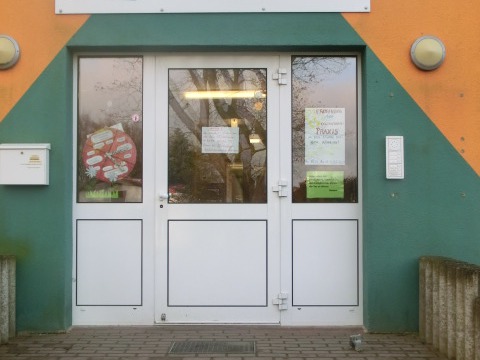 Die Praxis befindet sich im Obergeschoss einer Kindertagesstätte im Waldweg 29. Direkt im Nebengebäude befindet sich eine weitere Kita, die integrative Kita "Känguru" (unteres Bild)